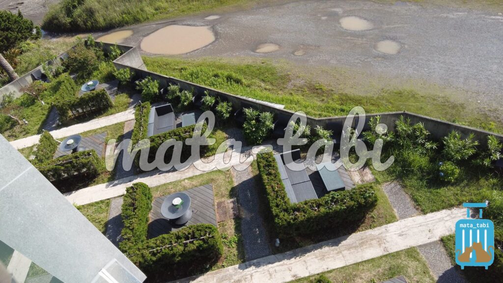 この時は、真下には緑に囲まれた素敵なガーデンテラスがありました。2025年にはこの場所にプールが新設されたそうで、夏の滞在がますます楽しみです🌊